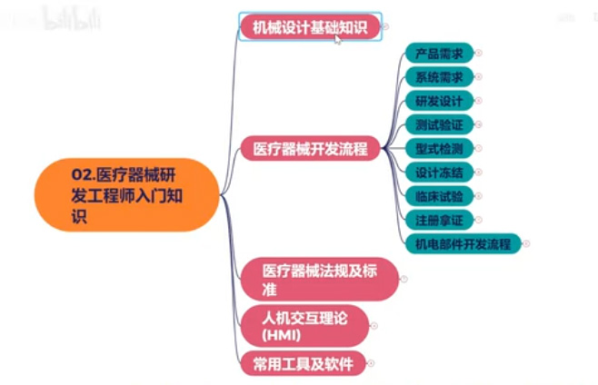 医疗器械研发工程师入门知识,,机械设计基础知识,医疗器械开发流程大概分为八个步骤(产品需求、系统需求、研发设计、测试验证、型式检测、设计冻结、临床试验、注册拿证、机电部件开发流程)。这八个步骤完成后,一款新的医疗器械就可以获批上市了。首先是产品需求确定,这个是由产品经理来进行定义,主要通过市场的调研,临床应用场景,医生拜访,产品经理需要对产品的整个工作流行定义和澄清。产品经理的需求会传递给系统工程部,由系统工程师承接,然后降产品的需求转化为工程技术指标。这个过程中,系统工程师需要完成系统功能架构和组成部件的划分,除此之外,还需要输出法规和标准,风险安全性、可用性、可服务性。和可制造性等相关的需求来对系统进行约束,确保系统可以满足医疗器械的要求。