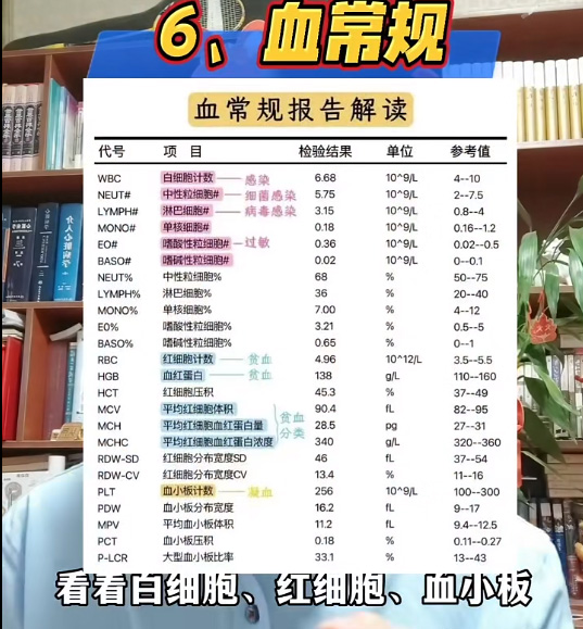 因为如果高血压同时合并了同型半胱氨酸升高那么脑梗的风险就会增加。所以很有必要对高血压的人来讲,查一个同型半胱氨酸。血糖血脂100个人中就有10个糖尿病的人数据来源《中国血脂管理指南》。长期高血脂糖尿病,如果没有得到有效的控制,会增加血管堵塞的风险,所以我们要查一查我们的血脂四项,查一个空腹血糖。也没必要做一个生化全套。意义不是很大。高尿酸容易引起痛风。也会增加心血管疾病的风险。尿酸一般在这个肾功能当中,顺便查一下肌酐、尿素氮、电解质、钾钠氯。肝功能的简项,肝功能也有很多种,查相对比较简单的,别整太多的。最后就是差血常规,看看白细胞、红细胞、血小板看看有没贫血也就足够了。其实就是抽两管血,这也是最基础最重要的几个检查项目。