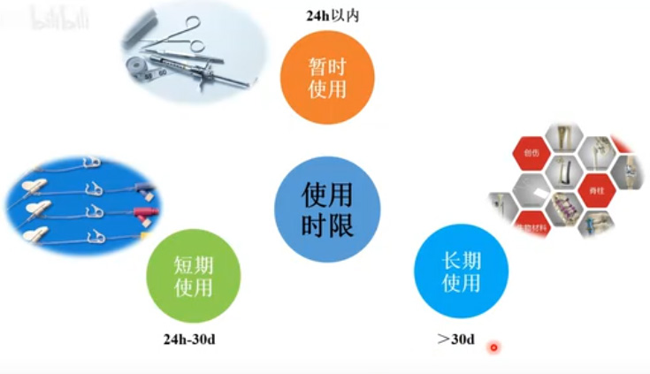 由于很多医疗器械都被划属于多个种类里面,标准不好统一为了使医疗器械的分类更加清晰国家又增加了使用时限,使用位置、医疗效果等等约束。使用时限分为短期使用,暂时使用、长期使用。暂时使用:医疗器械使用时间在一天以内。常见的器械有注射器、医用胶带等等。短期使用:医疗器械预期使用时间在一天以上的。30天以内的,常见的是留置针,可吸收缝合线。长期使用:医疗器械预期的,连续使用时间在30天以上的。常见的是骨科植入器械、胰岛素泵等。根据使用位置的不同又分为皮肤、腔道口、创伤、血循环、组织、中枢神经系统。根据对医疗效果的影响程度分为。基本不影响、轻微影响、重要影响。根据失控后可能造成的损伤程度。分为轻微损伤、中度损伤、严重损伤。这是以上的概念和定义。