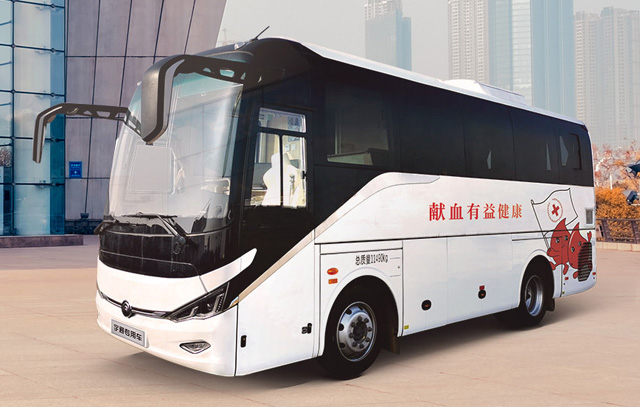 配置锂电池系统的9米长的采血车,取消了传统发动机的供电用锂电池完全代替。可以满足一天8小时的采血工作需求,锂电池放置在下面的行李舱里面。后面这个就是整个的一个电池块。大概有60度的电。内饰进行了升级,包括它的风道,顶棚,包层柱都做了一个商务改造。车厢的布局符合献血流程。采血区域一共有四个采血位,可以四个人同时采血。旁边是登记跟初筛的工作台。负责给采血的人进行登记。检测血型,做简单的初筛。