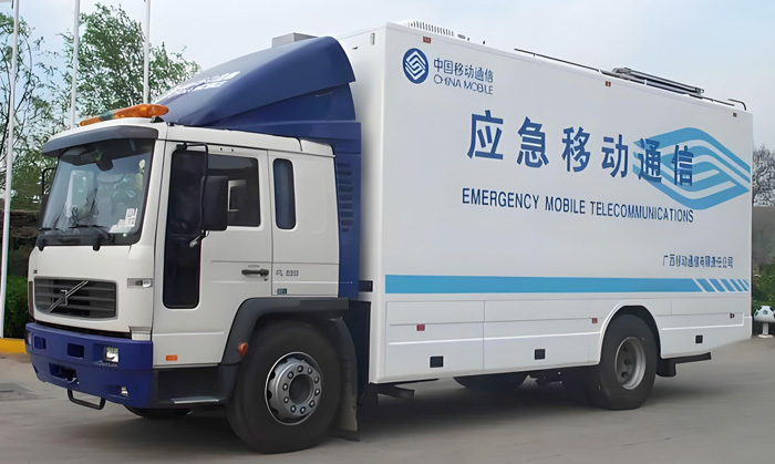 移动电源通信车应急供电,二类汽车底盘改装。车厢发电机和电力系统管理的专用车辆。用于会议通信抢险救灾等场景。机动性的备用电源。它具有良好的越野性能和各种路况的通行,可以全天候的作业。很好的满足户外作业和应急供电需要。选用东风汽车的底盘和发动机,车速可以稳定在90公里/小时以上。发动机功率:800KW。发电机组油箱:可连续工作8小时以上。采用国内知名品牌自动化控制模块,控制系统除了具有全面的控制、检测、显示保护功能外,还具有创新的待机自检、故障诊断及显示等功能。 厢体内部外部钢材为优质冷轧钢板,车厢尾部为对开门。发电机组进排风消声处理,消声器做降噪处理。电动液压绞盘,电缆绞车可根据不同规格电缆的要求选择不同的速比,安装在车厢后部。